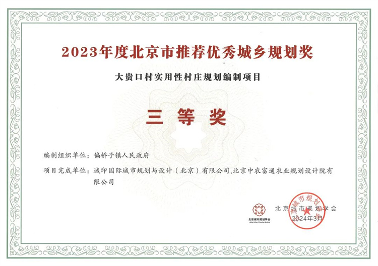 近日,由北京中農(nóng)富通農(nóng)業(yè)規(guī)劃設(shè)計(jì)院有限公司與城印國(guó)際城市規(guī)劃與設(shè)計(jì)(北京)有限公司聯(lián)合編制的大貴口村實(shí)用性村莊規(guī)劃編制項(xiàng)目,榮獲了2023年度北京市推薦優(yōu)秀城鄉(xiāng)......