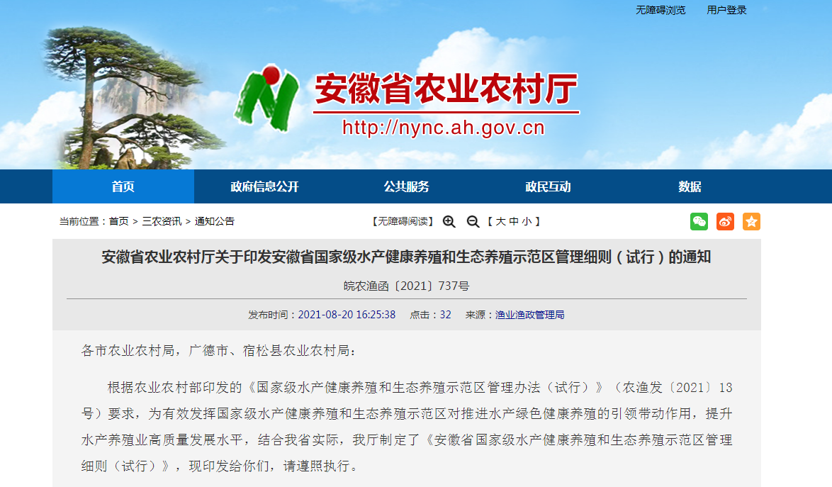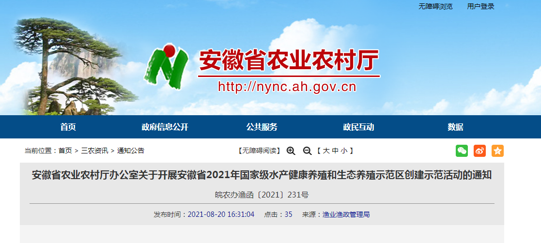 各市農業(yè)農村局,廣德市、宿松縣農業(yè)農村局:根據(jù)農業(yè)農村部漁業(yè)漁政管理局《關于開展2021年國家級水產健康養(yǎng)殖和生態(tài)養(yǎng)殖示范區(qū)創(chuàng)建示范活動的通知》(農漁養(yǎng)函〔20......