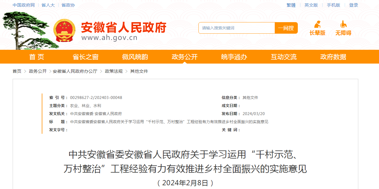 根據(jù)《中共中央、國務(wù)院關(guān)于學(xué)習(xí)運用“千村示范、萬村整治”工程經(jīng)驗有力有效推進(jìn)鄉(xiāng)村全面振興的意見》,結(jié)合我省實際,提出如下實施意見。一、總體要求做好2024年及今......