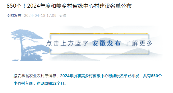 2024年度安徽省和美鄉(xiāng)村省級中心村建設(shè)名單已印發(fā),共有850個中心村入選,建設(shè)周期18個月。加快建設(shè)彰顯徽風(fēng)皖韻的宜居宜業(yè)和美鄉(xiāng)村,是推進(jìn)安徽農(nóng)業(yè)農(nóng)村現(xiàn)代化的......