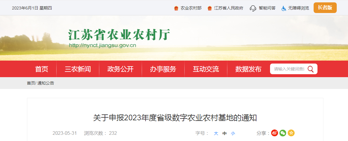 各設(shè)區(qū)市農(nóng)業(yè)農(nóng)村局,各有關(guān)單位:為貫徹落實2023年省委一號文件和《關(guān)于“十四五” 深入推進農(nóng)業(yè)數(shù)字化建設(shè)實施方案》(蘇政辦發(fā)〔2022〕27號)精神,持續(xù)推動......