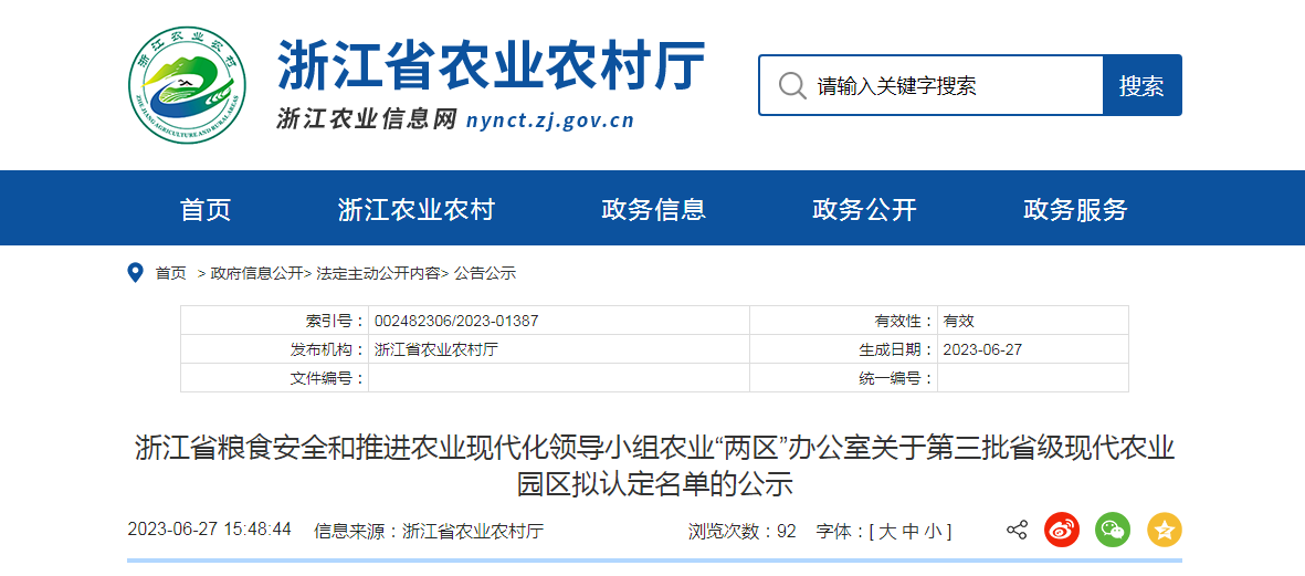 根據(jù)《浙江省現(xiàn)代農(nóng)業(yè)園區(qū)、特色農(nóng)業(yè)強鎮(zhèn)驗收辦法(試行)》和《關(guān)于開展第三批省級現(xiàn)代農(nóng)業(yè)園區(qū)驗收工作的通知》要求,經(jīng)省糧食安全和推進農(nóng)業(yè)現(xiàn)代化領(lǐng)導(dǎo)小組農(nóng)業(yè)“兩區(qū)”......