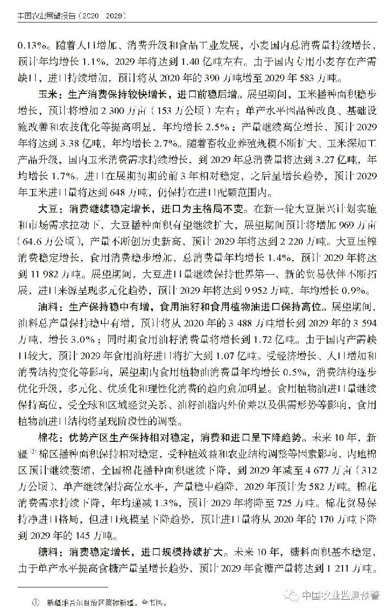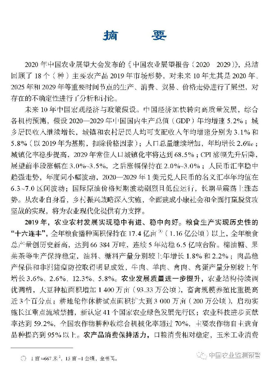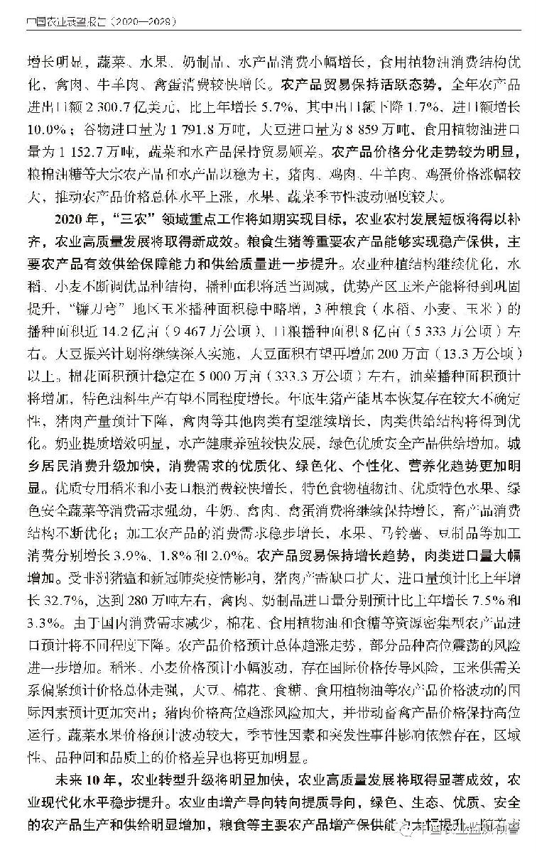 “未來(lái)10年,我國(guó)稻谷產(chǎn)量穩(wěn)定在2億噸以上,年均增長(zhǎng)0.6%,小麥產(chǎn)量年均增長(zhǎng)0.13%,玉米產(chǎn)量年均增長(zhǎng)2.5%,綠色、生態(tài)、優(yōu)質(zhì)、安全的農(nóng)產(chǎn)品生產(chǎn)和供給明顯增加……”4月20日發(fā)布的《中國(guó)農(nóng)業(yè)展望報(bào)告(2020-2029)》(以下簡(jiǎn)稱《報(bào)告》)中,一系列由農(nóng)業(yè)農(nóng)村部市場(chǎng)預(yù)警專家委員會(huì)預(yù)測(cè)研判的權(quán)威數(shù)據(jù),勾勒出我國(guó)未來(lái)10年糧食生產(chǎn)將穩(wěn)中有增、提質(zhì)調(diào)優(yōu)、增產(chǎn)保供能力大幅提升的總趨勢(shì)。