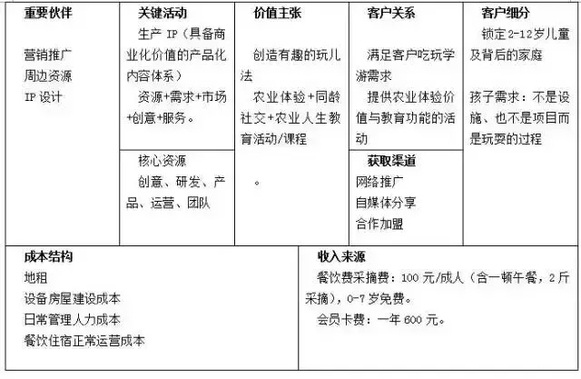 莊絡(luò)農(nóng)場(chǎng)商業(yè)模式畫布