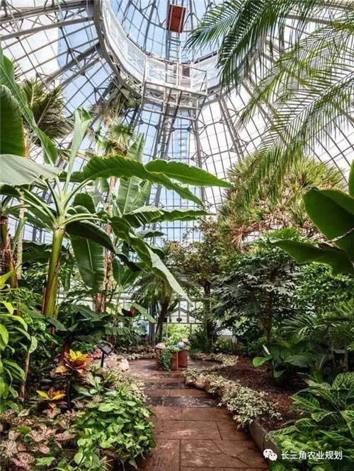 大型展覽溫室的旅游吸引力與觀賞價(jià)值主要體現(xiàn)在各種專類植物景觀、特殊觀賞品種上,同時(shí),作為花園中的綠色建筑,溫室本身也通過(guò)新的技術(shù)手段詮釋了人類與自然、動(dòng)植物和棲息地間的動(dòng)態(tài)關(guān)系,生動(dòng)展現(xiàn)園林藝術(shù)的動(dòng)感美。