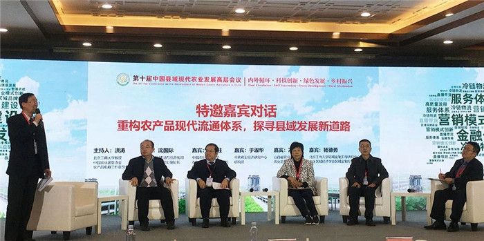 最后是特邀嘉賓對話環(huán)節(jié),北京工商大學(xué)教授、中國農(nóng)業(yè)展覽協(xié)會農(nóng)產(chǎn)品電商工作委員會主任洪濤擔(dān)任此環(huán)節(jié)的主持人,對話圍繞“重構(gòu)農(nóng)產(chǎn)品現(xiàn)代流通體系,探尋縣域發(fā)展新道路”這一主題展開討論。農(nóng)業(yè)農(nóng)村部市場與信息化司品牌與流通促進處副處長沈國際,中國農(nóng)業(yè)大學(xué)教授、農(nóng)業(yè)規(guī)劃科學(xué)研究所所長、中農(nóng)富通首席專家張?zhí)熘猩躺虡I(yè)經(jīng)濟研究中心研究員于淑華,山西省農(nóng)業(yè)農(nóng)村廳果業(yè)總站站長馮耀斌,北京工商大學(xué)區(qū)域金融工程研究中心主任、中國區(qū)域經(jīng)濟學(xué)會區(qū)域金融專業(yè)委員會主任委員楊德勇,各位嘉賓分別從實踐的角度出發(fā),結(jié)合具體情況,為我們分享了如何重構(gòu)農(nóng)產(chǎn)品現(xiàn)代流通體系,探尋縣域發(fā)展新道路。