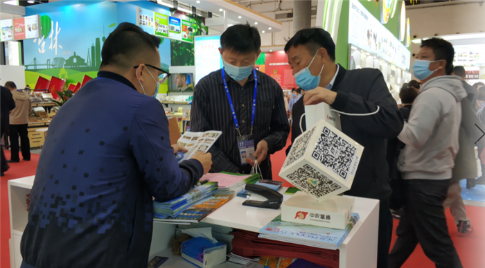 ▲廣西貿(mào)促會(huì)會(huì)長(zhǎng)李常官蒞臨展位參觀,廣西中農(nóng)富玉國(guó)際農(nóng)業(yè)科技有限公司總經(jīng)理韓雪松陪同