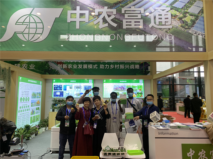 此次中農(nóng)富通展位展示主體為現(xiàn)代果業(yè)智慧農(nóng)業(yè)產(chǎn)業(yè)園規(guī)劃沙盤(解決方案),是中農(nóng)富通在多年“一站式農(nóng)業(yè)高科技服務(wù)”的經(jīng)驗(yàn)與創(chuàng)新中規(guī)劃設(shè)計(jì)出來的解決方案,本解決方案從整體規(guī)劃與建設(shè)、環(huán)境控制、水肥一體化、物聯(lián)網(wǎng)管控平臺(tái)、專家系統(tǒng)指導(dǎo)技術(shù)相結(jié)合,在規(guī)?;?、自動(dòng)化種植基礎(chǔ)上,通過“生產(chǎn)+加工+科技”,聚集現(xiàn)代生產(chǎn)要素及相關(guān)農(nóng)業(yè)技術(shù)服務(wù),打造先進(jìn)的現(xiàn)代農(nóng)業(yè)園區(qū)發(fā)展平臺(tái)。此外還有新奇特農(nóng)產(chǎn)品的展示,展位吸引了大量的觀眾駐足觀看、拍照、咨詢。此次參展與多家市、縣級(jí)農(nóng)業(yè)相關(guān)部門,自營(yíng)農(nóng)業(yè)基地,種植戶,就農(nóng)業(yè)規(guī)劃項(xiàng)目、農(nóng)業(yè)嘉年華項(xiàng)目策劃建設(shè)、農(nóng)業(yè)園區(qū)運(yùn)營(yíng)管理、栽培模式及優(yōu)良品種等多方面業(yè)務(wù)進(jìn)行了初步洽談;并與法國(guó)、印度、巴基斯坦、也門等多個(gè)國(guó)家的國(guó)際嘉賓進(jìn)行了合作交流。