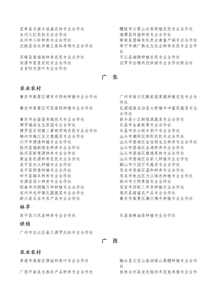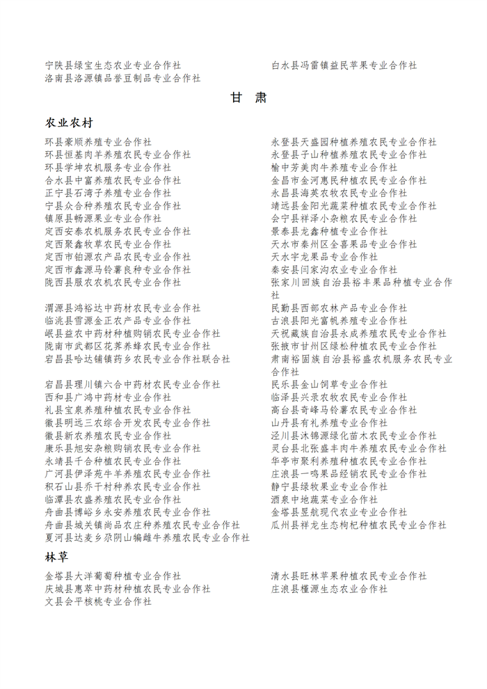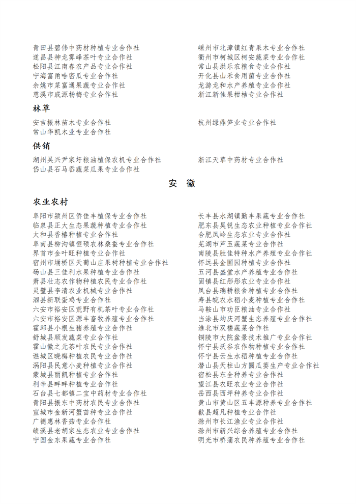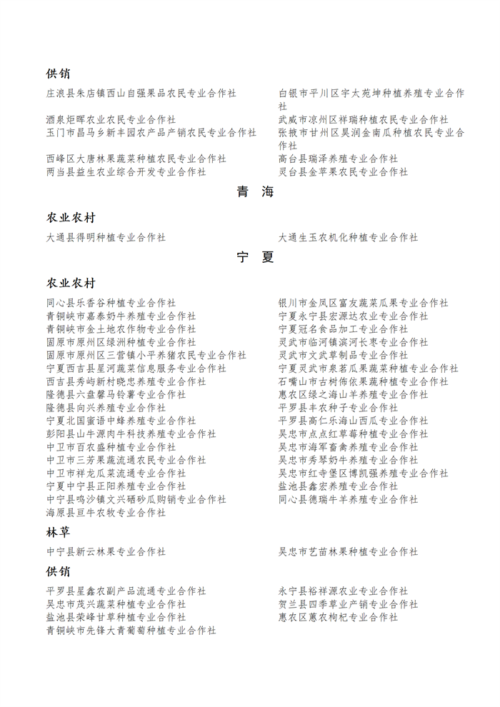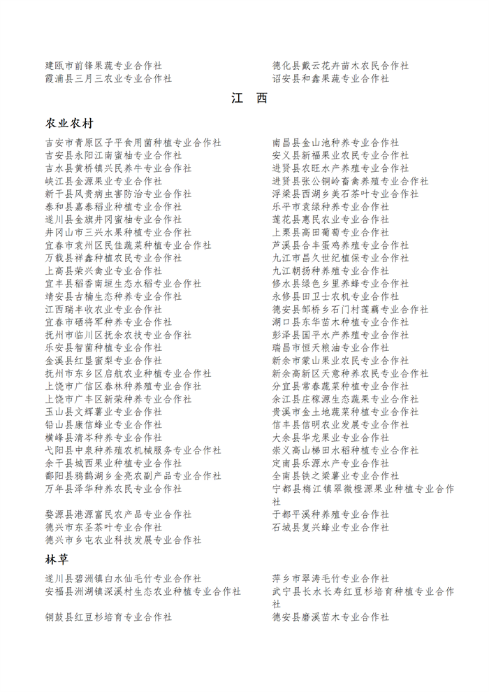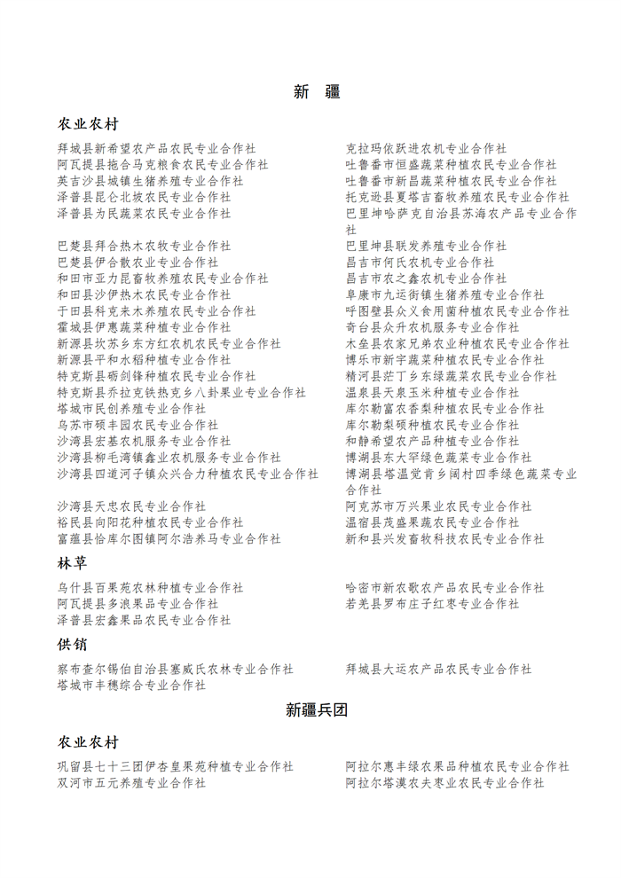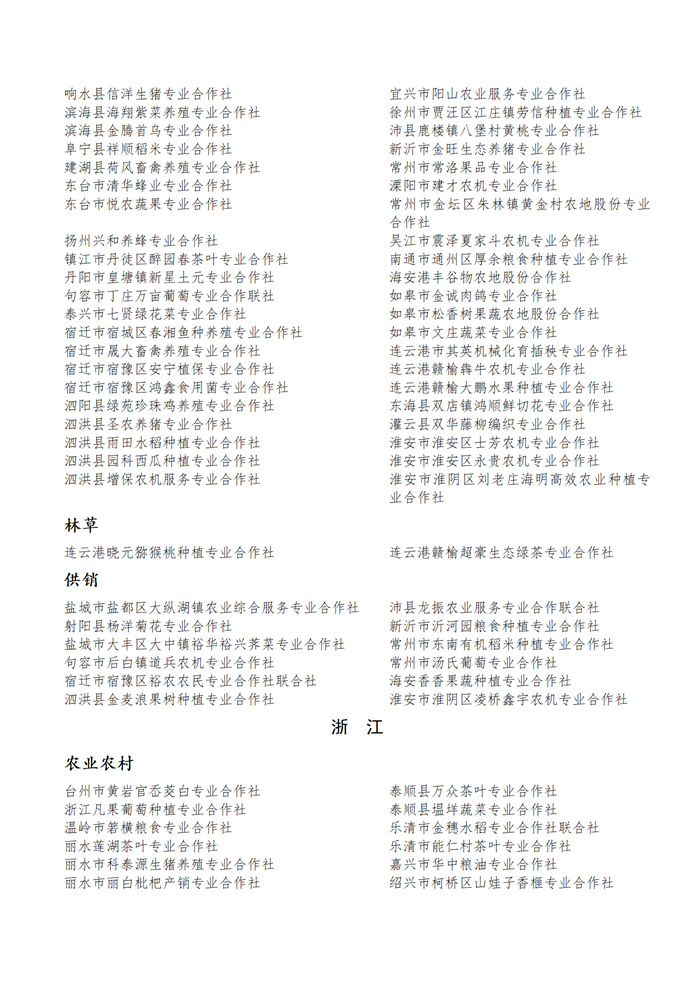 國(guó)家農(nóng)民合作社示范社公示名單.docx