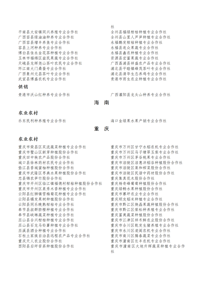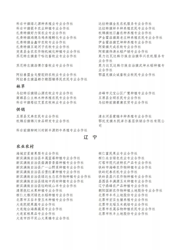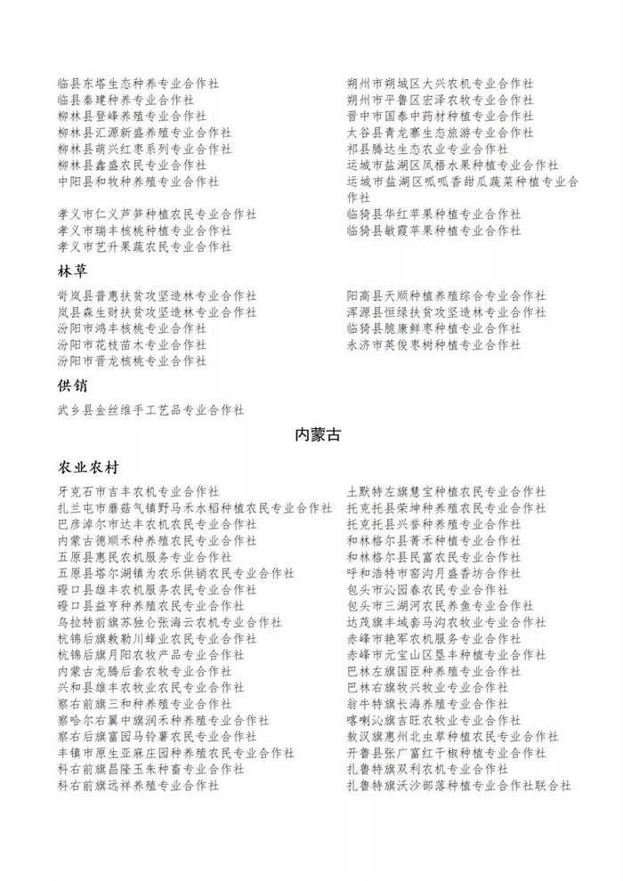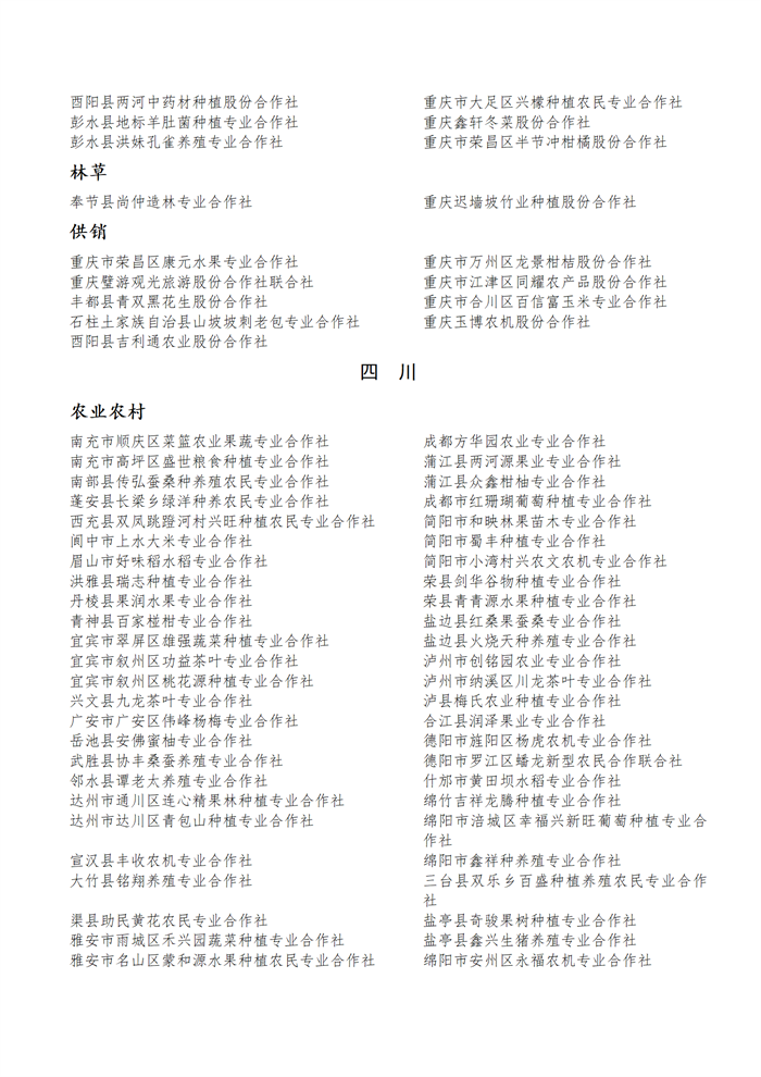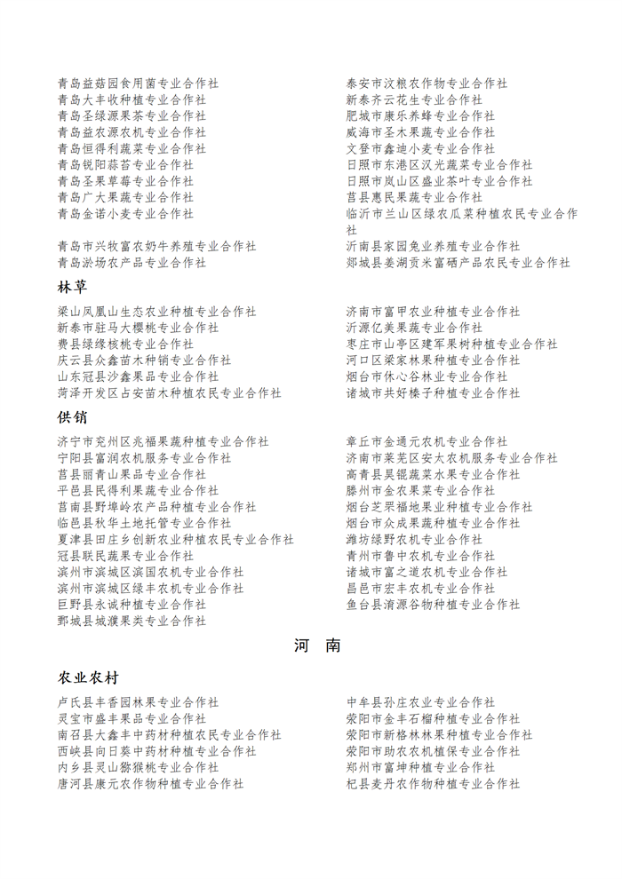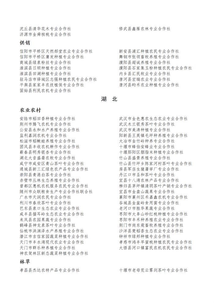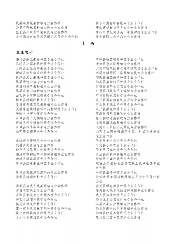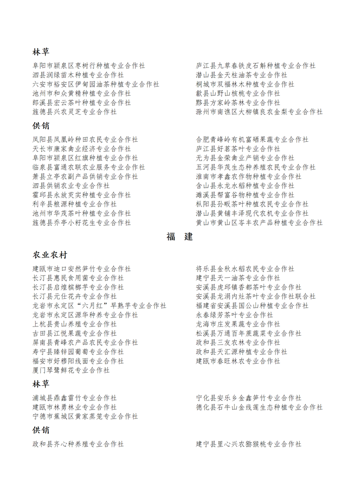 國(guó)家農(nóng)民合作社示范社公示名單.docx