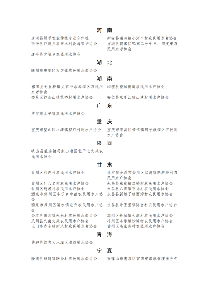 全國(guó)農(nóng)民用水合作示范組織公示名單.docx