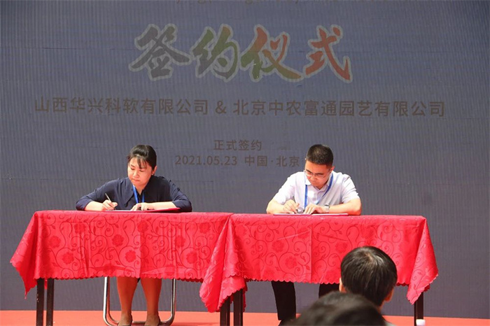 中化明達(dá)控股集團(tuán)有限公司(中化地質(zhì)礦山總局) 、北京農(nóng)信互聯(lián)數(shù)據(jù)科技有限公司、太原誠邁科技有限公司、山西華興科軟有限公司、豬八戒網(wǎng)分別與北京中農(nóng)富通園藝有限公司簽署了合作協(xié)議。