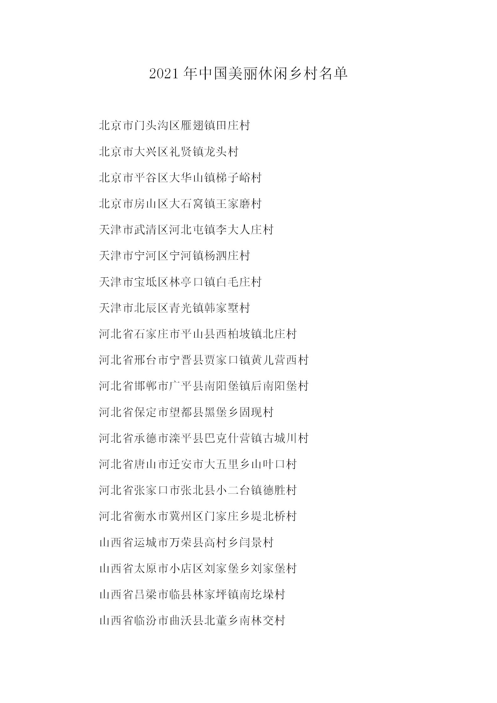 附件:1.2021年中國美麗休閑鄉(xiāng)村名單