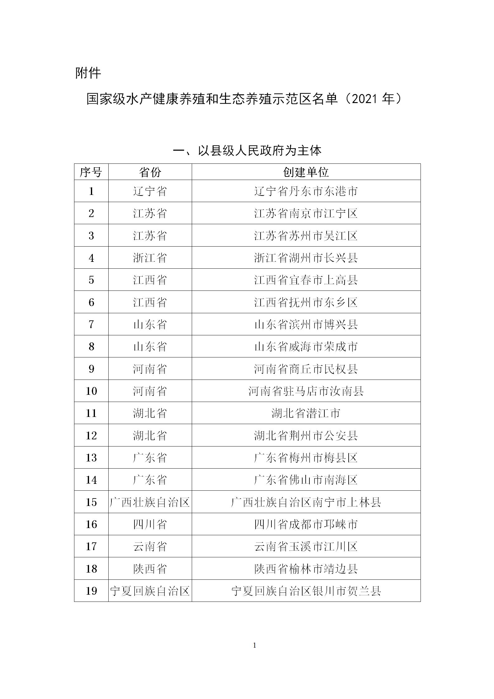 附件:國家級水產(chǎn)健康養(yǎng)殖和生態(tài)養(yǎng)殖示范區(qū)名單(2021年)