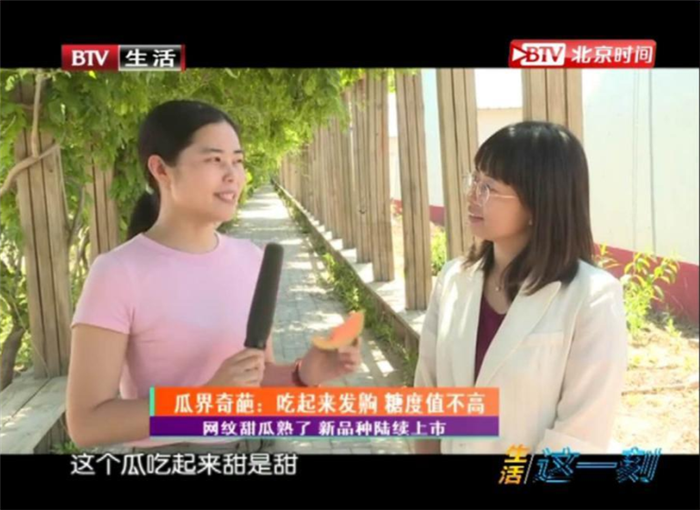 ▼5月25日,BTV北京時(shí)間《生活這一刻》直播生活資訊欄目對富通大潮來的“網(wǎng)紋甜瓜”進(jìn)行專題報(bào)道。其中北京農(nóng)業(yè)技術(shù)推廣站高級農(nóng)藝師李婷講解了新品種陸續(xù)上市情況,網(wǎng)紋甜瓜如何種植,糖度多高等知識。介紹說全市一共有 75 個(gè)品種的網(wǎng)紋甜瓜,富通大潮來科技園供應(yīng)基地有 19 個(gè)品種的網(wǎng)紋甜瓜,這里品種豐富,可以讓你會品嘗到不同口味。
