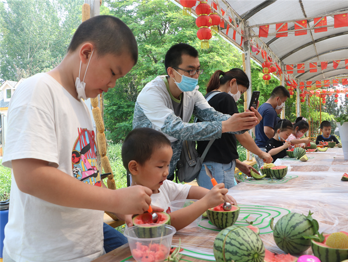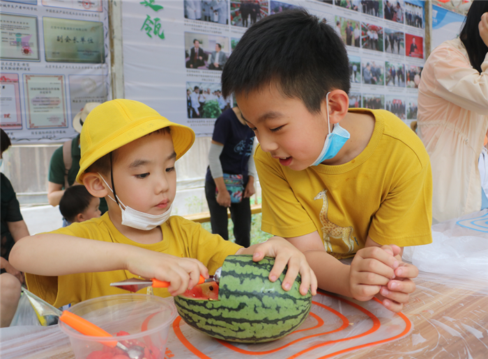 ▼2020年六一兒童節(jié),北京國際都市農(nóng)業(yè)科技園(簡稱 科技園)為孩子們準(zhǔn)備了快樂田野科技園戶外活動(dòng)——甜蜜趣味體驗(yàn)、猜品稱重-網(wǎng)紋甜瓜探秘(猜中即送)、農(nóng)產(chǎn)品套圈活動(dòng)(套中即送)、清涼西瓜小食制作、趣味徒手摸魚、農(nóng)事樂享采摘、植物探秘等農(nóng)事趣味活動(dòng),孩子們在收獲歡樂的同時(shí),也收獲了知識。