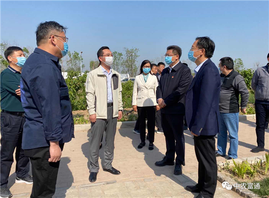 ▼4月29日上午,河南省農(nóng)業(yè)農(nóng)村廳副廳長劉保倉一行考察了中農(nóng)富通負(fù)責(zé)的開封農(nóng)業(yè)嘉年華項(xiàng)目現(xiàn)場并對(duì)河南省2020年農(nóng)民豐收節(jié)主會(huì)場選址調(diào)研,祥符區(qū)區(qū)委書記李軍,市農(nóng)業(yè)農(nóng)村局黨組副書記、副局長劉磊,愛思嘉農(nóng)旅董事長,中農(nóng)富通項(xiàng)目開發(fā)部副總經(jīng)理葉生星陪同調(diào)研并對(duì)項(xiàng)目進(jìn)展和豐收節(jié)主會(huì)場籌備工作進(jìn)行了介紹。副廳長肯定了中農(nóng)富通對(duì)農(nóng)業(yè)作出的貢獻(xiàn),并對(duì)設(shè)施產(chǎn)業(yè)集群表示高度認(rèn)可。