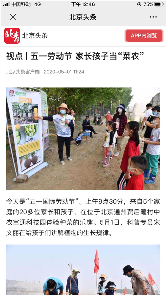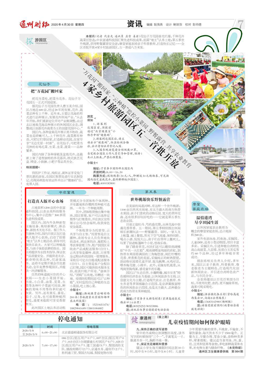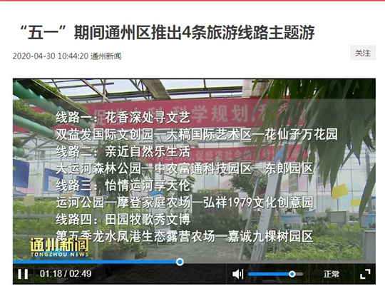 ▼五一前后,北京廣播電視報(bào)和通州時(shí)訊、通州新聞、北京頭條、北青社區(qū)報(bào)通州版微信公眾號(hào)等媒體報(bào)道北京國際都市農(nóng)業(yè)科技園。