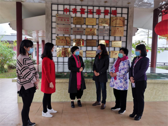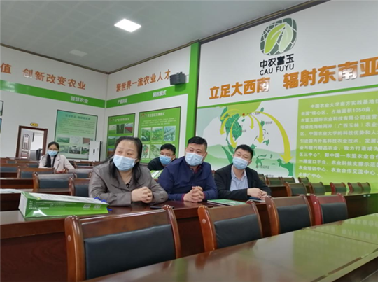 玉林市市婦聯(lián)黨組書(shū)記羅小潔(圖右三)到中農(nóng)富玉調(diào)研