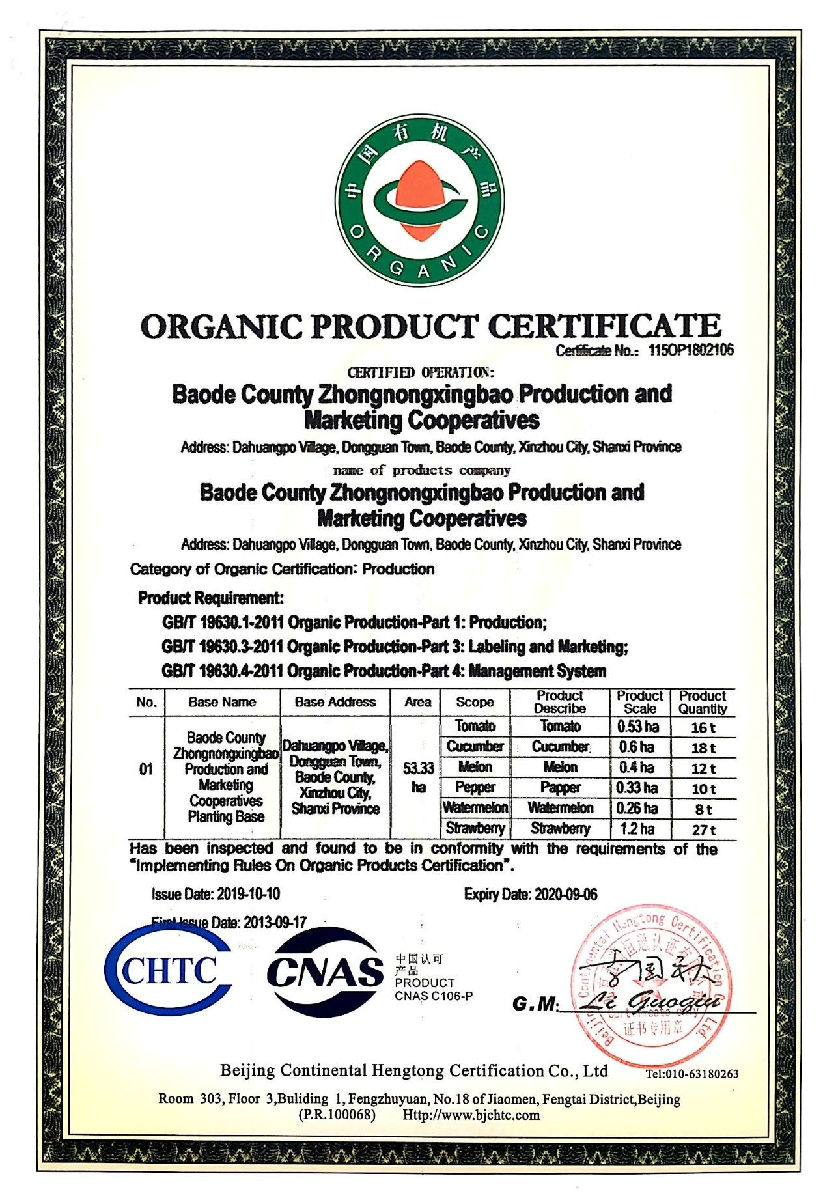 ▼3月19日,中農(nóng)富通分支機(jī)構(gòu)——保德縣中農(nóng)興保產(chǎn)銷合作社(簡(jiǎn)稱合作社)順利通過了北京五洲恒通認(rèn)證有限公司的有機(jī)產(chǎn)品認(rèn)證。為把有機(jī)果蔬帶給大家,讓更多的人享受健康生活,合作社力抓標(biāo)準(zhǔn)化、規(guī)范化生產(chǎn),從2013年開始西紅柿、黃瓜等農(nóng)產(chǎn)品每年都通過有機(jī)產(chǎn)品認(rèn)證,打造系列農(nóng)產(chǎn)品品牌,對(duì)推進(jìn)保德縣扶貧產(chǎn)業(yè)發(fā)展,促進(jìn)農(nóng)業(yè)增效、農(nóng)民增收,發(fā)揮了很大的帶動(dòng)作用。