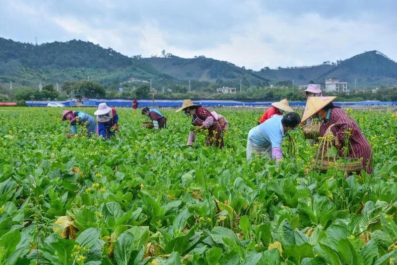 ▼在海峽兩岸(廣西玉林)農(nóng)業(yè)合作科技示范園(中農(nóng)富玉農(nóng)場(chǎng))的蔬菜基地里,廣西中農(nóng)富玉國(guó)際農(nóng)業(yè)科技有限公司(簡(jiǎn)稱中農(nóng)富玉)公司員工和農(nóng)戶,一起采摘新鮮蔬菜、稱重裝箱、裝車……這些新鮮蔬菜幾天后將送到湖北人民的餐桌。