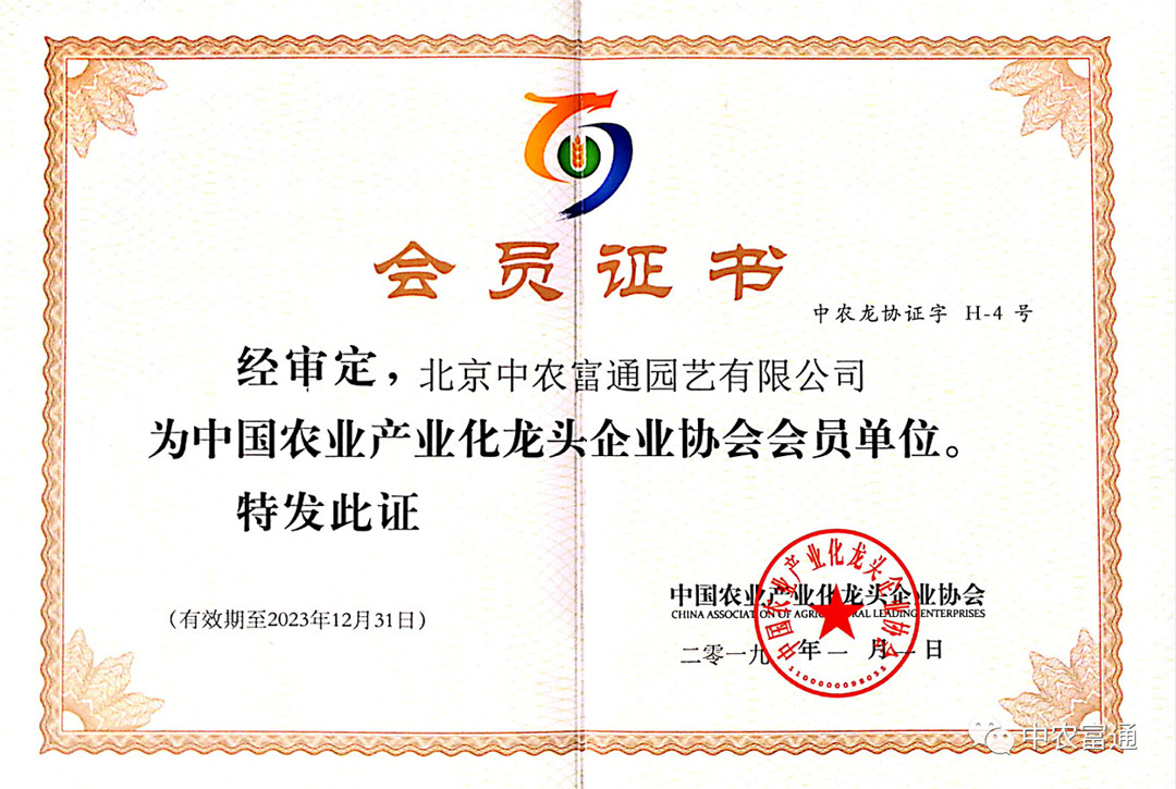 中農(nóng)富通已持續(xù)11年為國家高新技術(shù)企業(yè);在成為北京市農(nóng)業(yè)產(chǎn)業(yè)化龍頭企業(yè)5年后,2019年,中農(nóng)富通成功當(dāng)選為中國農(nóng)業(yè)產(chǎn)業(yè)化龍頭企業(yè)協(xié)會會員;繼北京、廣西玉林分支機(jī)構(gòu)之后,河北邢臺分支機(jī)構(gòu)成功獲得市級農(nóng)業(yè)產(chǎn)業(yè)化重點(diǎn)龍頭企業(yè)認(rèn)定,并榮獲“國家科技中小企業(yè)”;北京兩家分支機(jī)構(gòu)雙雙入選北京市設(shè)計(jì)創(chuàng)新中心,旗下6家分支機(jī)構(gòu)順利通過高新技術(shù)企業(yè)認(rèn)定或復(fù)審。