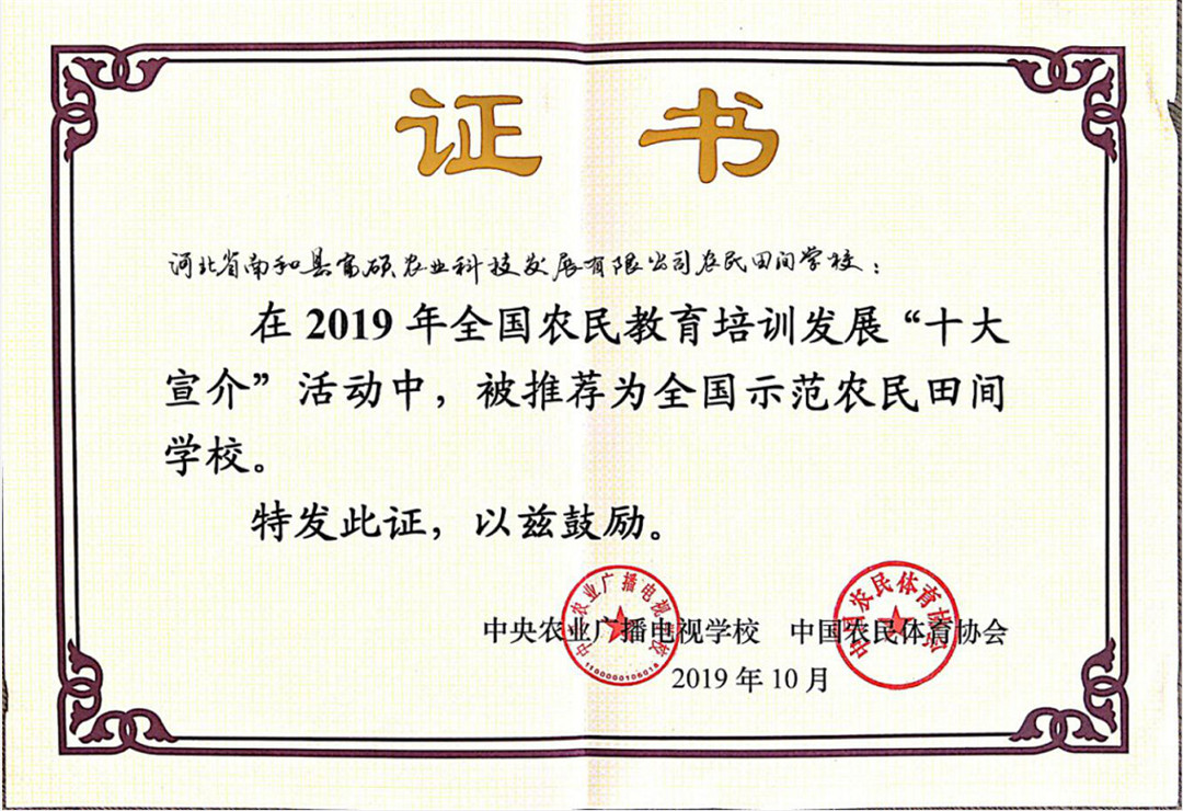 中農(nóng)富通多個示范基地獲評為“高校實(shí)踐教育基地”、“高校學(xué)生實(shí)習(xí)基地”、“大學(xué)生社會實(shí)踐基地”等,助力學(xué)生教學(xué)培養(yǎng)和農(nóng)業(yè)科技研究。河北邢臺示范基地在成為市級“農(nóng)民田間學(xué)校”后進(jìn)一步榮獲“全國示范農(nóng)民田間學(xué)?!奔稗r(nóng)業(yè)農(nóng)村部評選的“100家示范性農(nóng)民田間學(xué)校”;北京、河北的示范基地分別被評為 “全國休閑農(nóng)業(yè)與鄉(xiāng)村旅游四星級園區(qū)”“河北省4A級旅游景區(qū)”。此外各示范基地相繼被指定為所在地區(qū)的“農(nóng)業(yè)科技示范基地”“農(nóng)業(yè)實(shí)踐基地”“市民學(xué)習(xí)示范基地”“農(nóng)村基層黨員干部現(xiàn)場教學(xué)實(shí)踐基地” “高校實(shí)踐教育基地”“高校學(xué)生實(shí)習(xí)基地”“大學(xué)生社會實(shí)踐基地”“科普教育示范基地”“中小學(xué)綜合教育實(shí)踐基地”等近60 項(xiàng)榮譽(yù)。