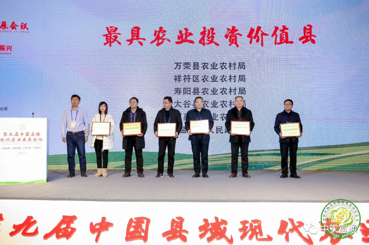 之后,對在縣域現(xiàn)代農(nóng)業(yè)發(fā)展上做出突出貢獻(xiàn)的組織或個(gè)人進(jìn)行了頒獎。頒發(fā)了品牌農(nóng)業(yè)示范縣、最具農(nóng)業(yè)投資價(jià)值縣、縣域農(nóng)村合作組織最佳示范帶動組織、縣域農(nóng)村合作組織杰出人物、農(nóng)業(yè)產(chǎn)業(yè)化創(chuàng)新發(fā)展企業(yè)等獎項(xiàng),將大會推向了高潮。