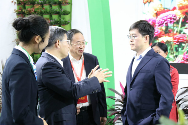 湖南省委副書記烏蘭、益陽市委書記瞿海、赫山區(qū)委書記鄧正安來到益陽現(xiàn)代農(nóng)業(yè)嘉年華展區(qū),各位領導在展示的特色蔬菜、花卉前聽取講解員的詳細介紹