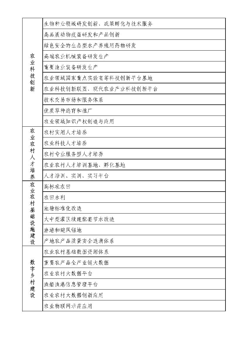 (九)農(nóng)業(yè)農(nóng)村基礎(chǔ)設(shè)施建設(shè)。支持社會資本參與高標(biāo)準(zhǔn)農(nóng)田建設(shè)、農(nóng)田水利建設(shè),參與實施區(qū)域化整體建設(shè),推進(jìn)田水林路電綜合配套,同步發(fā)展高效節(jié)水灌溉。鼓勵參與漁港和避風(fēng)錨地建設(shè)。鼓勵社會資本參與農(nóng)產(chǎn)品產(chǎn)地追溯體系建設(shè),提供產(chǎn)品分級和物流運輸周轉(zhuǎn)等服務(wù)。