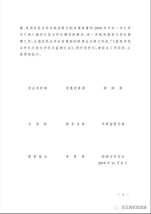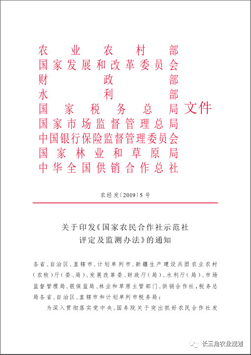 為深入貫徹落實黨中央、國務院關于突出抓好農民合作社發(fā)展、促進農民合作社規(guī)范提升的決策部署和2019年中央一號文件關于深入推進示范合作社建設的要求,進一步規(guī)范國家示范社管理工作,全國農民合作社發(fā)展部際聯(lián)席會議修訂形成了《國家農民合作社示范社評定及監(jiān)測辦法》,現(xiàn)印發(fā)你們,請結合工作實際,認真貫徹執(zhí)行。