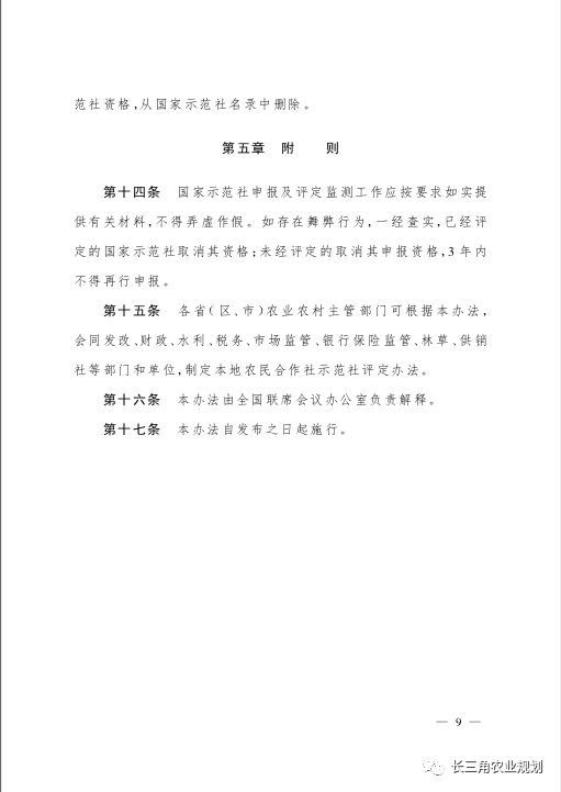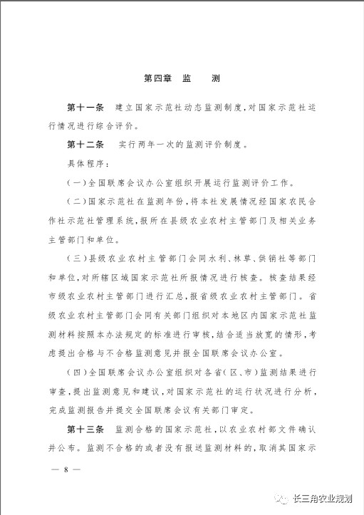 關于印發(fā)《國家農民合作社示范社評定及監(jiān)測辦法》的通知