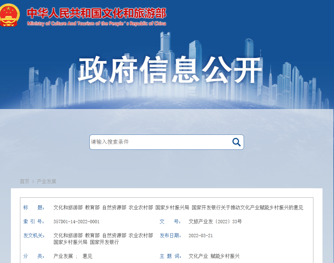 為全面貫徹鄉(xiāng)村振興戰(zhàn)略,落實(shí)《中共中央 國務(wù)院關(guān)于做好2022年全面推進(jìn)鄉(xiāng)村振興重點(diǎn)工作的意見》提出的“啟動實(shí)施文化產(chǎn)業(yè)賦能鄉(xiāng)村振興計(jì)劃”,以文化產(chǎn)業(yè)賦能鄉(xiāng)......