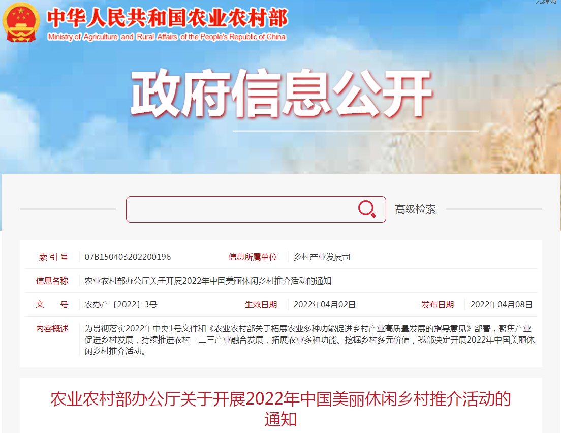 各省、自治區(qū)、直轄市農(nóng)業(yè)農(nóng)村(農(nóng)牧)廳(局、委),新疆生產(chǎn)建設(shè)兵團(tuán)農(nóng)業(yè)農(nóng)村局: 為貫徹落實(shí)2022年中央1號文件和《農(nóng)業(yè)農(nóng)村部關(guān)于拓展農(nóng)業(yè)多種功能促進(jìn)鄉(xiāng)村產(chǎn)業(yè)......