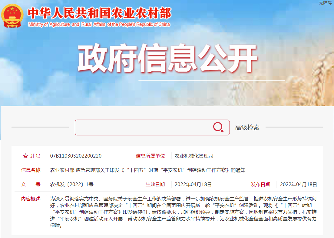 “平安農(nóng)機(jī)”創(chuàng)建活動是貫徹落實(shí)黨中央、國務(wù)院關(guān)于加強(qiáng)安全生產(chǎn)工作決策部署、強(qiáng)化農(nóng)機(jī)安全生產(chǎn)工作的重要抓手。為示范帶動農(nóng)機(jī)安全生產(chǎn)監(jiān)管工作落細(xì)落小,堅(jiān)決遏制重特大......