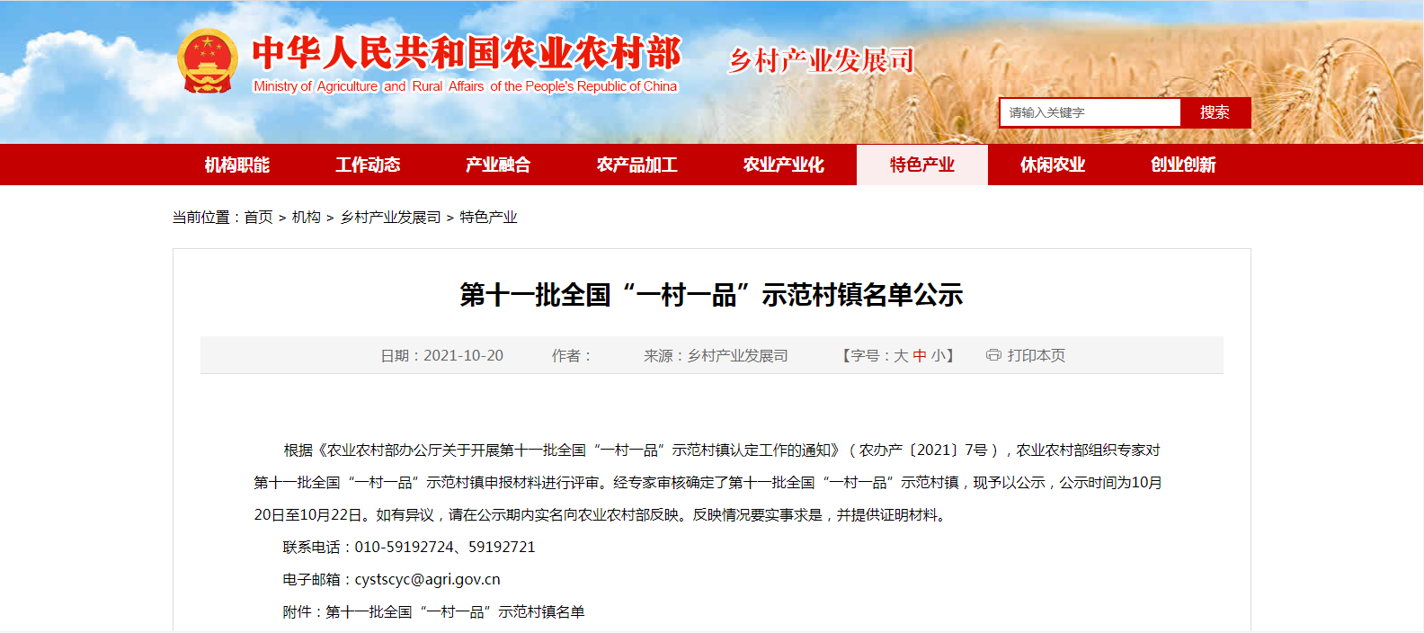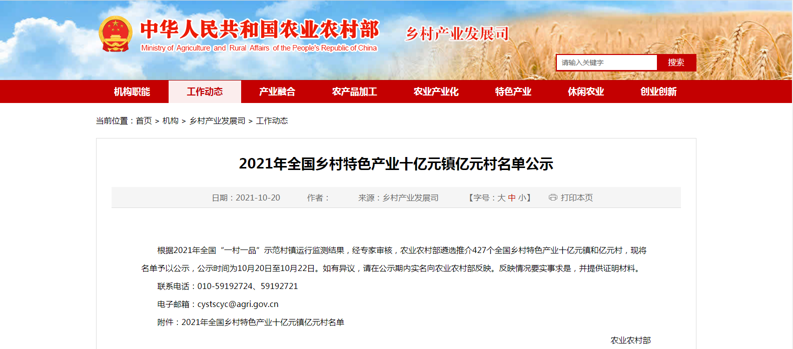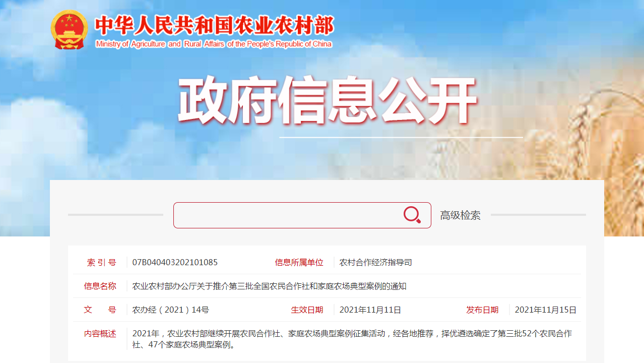 根據(jù)2021年全國“一村一品”示范村鎮(zhèn)運行監(jiān)測結(jié)果,經(jīng)專家審核,農(nóng)業(yè)農(nóng)村部遴選推介427個全國鄉(xiāng)村特色產(chǎn)業(yè)十億元鎮(zhèn)和億元村,現(xiàn)將名單予以公示,公示時間為10......