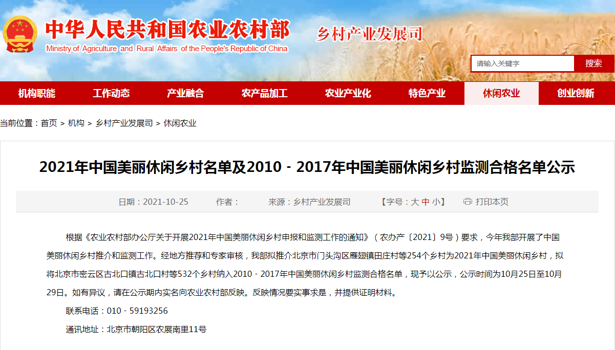 根據(jù)《農(nóng)業(yè)農(nóng)村部辦公廳關(guān)于開展2021年中國美麗休閑鄉(xiāng)村申報和監(jiān)測工作的通知》(農(nóng)辦產(chǎn)〔2021〕9號)要求,今年我部開展了中國美麗休閑鄉(xiāng)村推介和監(jiān)測工作。經(jīng)地......