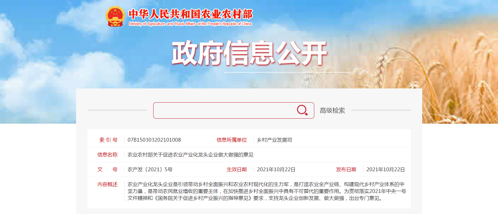 根據(jù)《農(nóng)業(yè)產(chǎn)業(yè)化國家重點龍頭企業(yè)認定和運行監(jiān)測管理辦法》(農(nóng)經(jīng)發(fā)〔2018〕1號)規(guī)定和《農(nóng)業(yè)農(nóng)村部辦公廳關(guān)于開展第七批農(nóng)業(yè)產(chǎn)業(yè)化國家重點龍頭企業(yè)申報工作的通知......