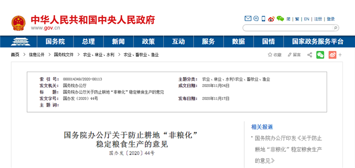 國(guó)務(wù)院辦公廳日前印發(fā)《關(guān)于防止耕地“非糧化”穩(wěn)定糧食生產(chǎn)的意見(jiàn)》?!兑庖?jiàn)》指出,要堅(jiān)持以習(xí)近平新時(shí)代中國(guó)特色社會(huì)主義思想為指導(dǎo),認(rèn)真落實(shí)黨中央、國(guó)務(wù)院決策部署,......