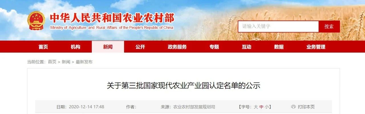 為落實(shí)《國(guó)家農(nóng)業(yè)科技園區(qū)發(fā)展規(guī)劃(2018-2025年)》總體部署,按照《國(guó)家農(nóng)業(yè)科技園區(qū)管理辦法》要求,經(jīng)過(guò)地方推薦申報(bào)、材料審查、現(xiàn)場(chǎng)考察、視頻答辯等程序,......