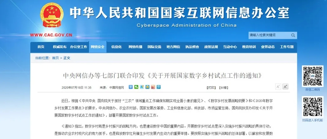 近日,根據(jù)《中共中央 國務院關于抓好“三農”領域重點工作確保如期實現(xiàn)全面小康的意見》、《數(shù)字鄉(xiāng)村發(fā)展戰(zhàn)略綱要》和《2020年數(shù)字鄉(xiāng)村發(fā)展工作要點》的要求,中央網(wǎng)......