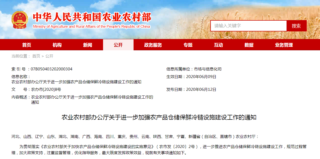 為貫徹落實《農業(yè)農村部關于加快農產品倉儲保鮮冷鏈設施建設的實施意見》(農市發(fā)〔2020〕2號),進一步推進農產品倉儲保鮮冷鏈設施建設工作,規(guī)范過程管理,加大政策......