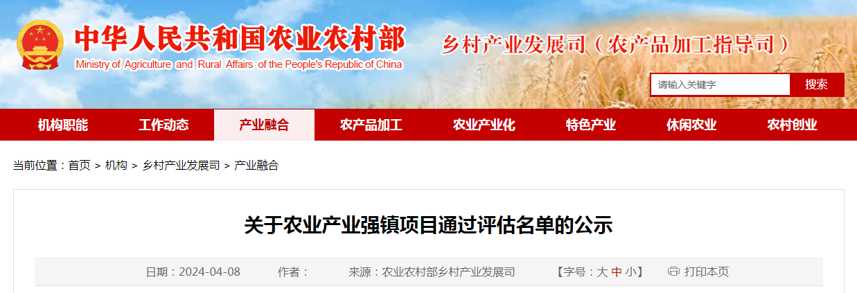 按照農(nóng)業(yè)農(nóng)村部、財(cái)政部對(duì)2021—2022年批準(zhǔn)建設(shè)農(nóng)業(yè)產(chǎn)業(yè)強(qiáng)鎮(zhèn)項(xiàng)目的工作安排,已按程序完成農(nóng)業(yè)產(chǎn)業(yè)強(qiáng)鎮(zhèn)項(xiàng)目評(píng)估工作,現(xiàn)將擬通過評(píng)估的名單予以公示,公示期為4月......