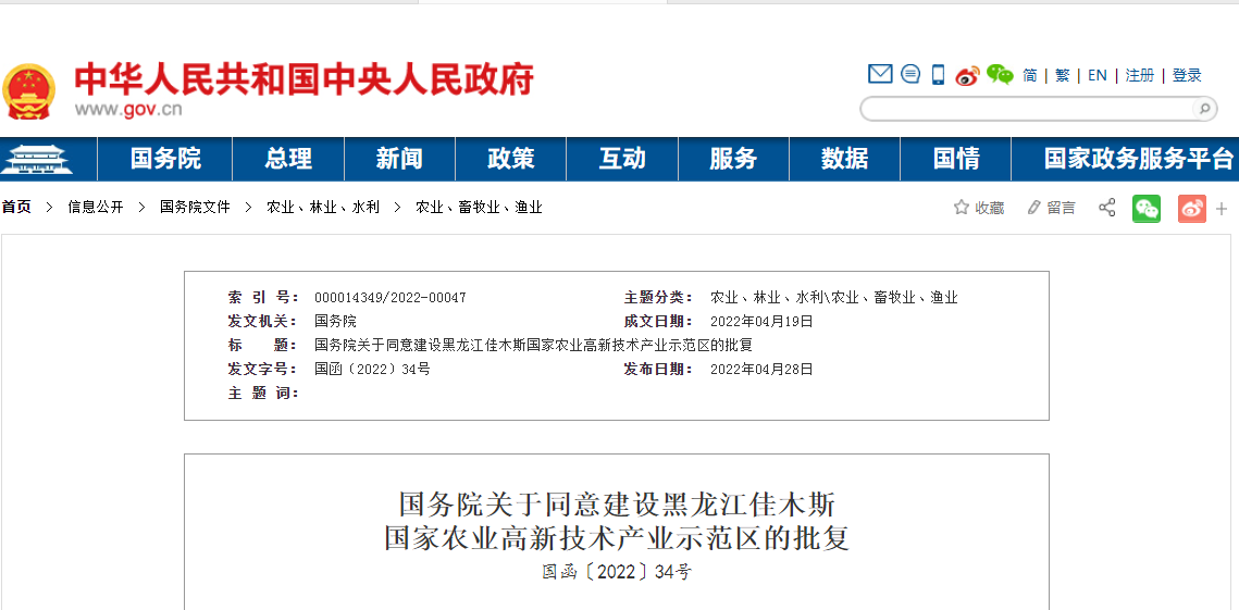 國務院關于同意建設吉林長春國家農業(yè)高新技術產業(yè)示范區(qū)的批復國函〔2022〕33號吉林省人民政府:你省關于將吉林公主嶺國家農業(yè)科技園區(qū)升級為國家農業(yè)高新技術產業(yè)示......