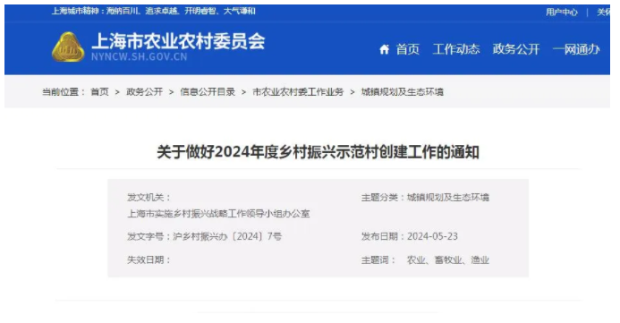 各涉農(nóng)區(qū)實施鄉(xiāng)村振興戰(zhàn)略工作領導小組辦公室:根據(jù)《關于做好2024年度鄉(xiāng)村振興示范村申報工作的通知》(滬鄉(xiāng)村振興辦〔2024〕3號)要求,經(jīng)區(qū)申報、市評審,推薦......