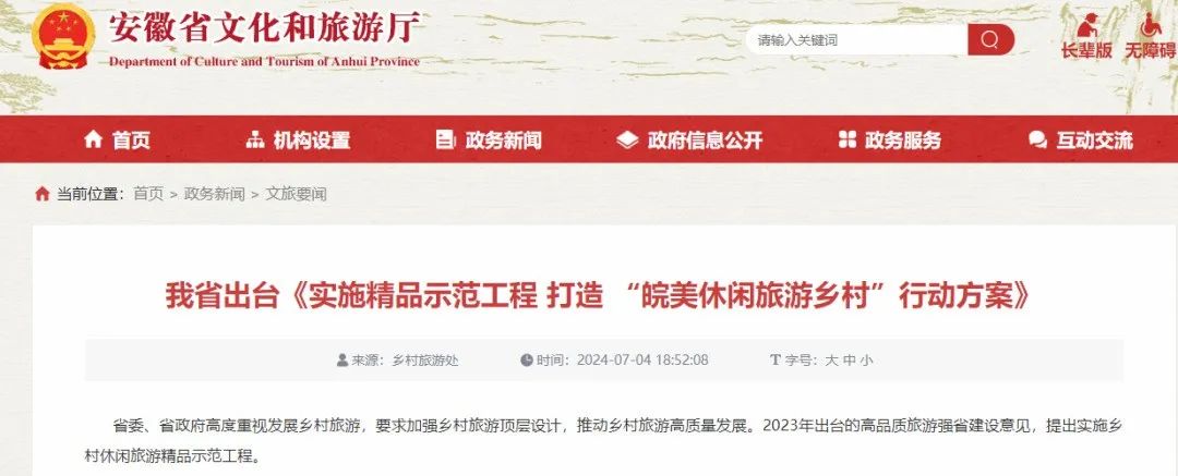 為推動全省鄉(xiāng)村旅游發(fā)展提質(zhì)增效,更好滿足人民群眾旅游消費升級需求,安徽省委、省政府高度重視發(fā)展鄉(xiāng)村旅游,要求加強鄉(xiāng)村旅游頂層設計,推動鄉(xiāng)村旅游高質(zhì)量發(fā)展,......