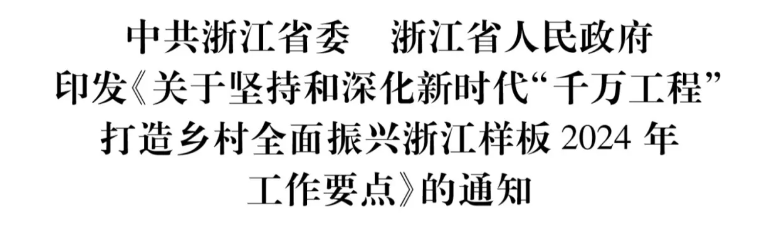 各市、縣(市、區(qū))黨委和人民政府,省直屬各單位: 現(xiàn)將《關(guān)于堅持和深化新時代“千萬工程”打造鄉(xiāng)村全面振興浙江樣板2024年工作要點》印發(fā)給你們,請結(jié)合實際認(rèn)真......