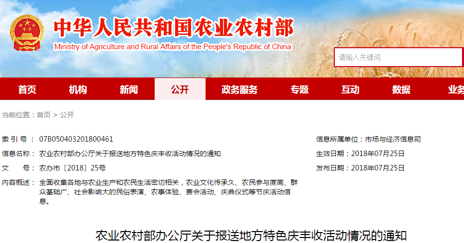 農(nóng)業(yè)農(nóng)村部辦公廳關(guān)于 報(bào)送地方特色慶豐收活動(dòng)情況的通知...