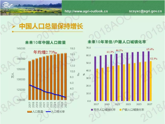 近日,中國(guó)農(nóng)業(yè)科學(xué)院農(nóng)業(yè)信息研究所主辦的“2018中國(guó)農(nóng)業(yè)展望大會(huì)”在北京舉行。大會(huì)發(fā)布了《中國(guó)農(nóng)業(yè)展望報(bào)告(2018-2027)》(簡(jiǎn)稱《報(bào)告》),對(duì)未來(lái)10年中國(guó)主要農(nóng)產(chǎn)品市場(chǎng)供需進(jìn)行了預(yù)測(cè)?!秷?bào)告》指出,展望后期,受成本推動(dòng)和經(jīng)濟(jì)增長(zhǎng)等因素影響,農(nóng)產(chǎn)品價(jià)格穩(wěn)中趨漲。