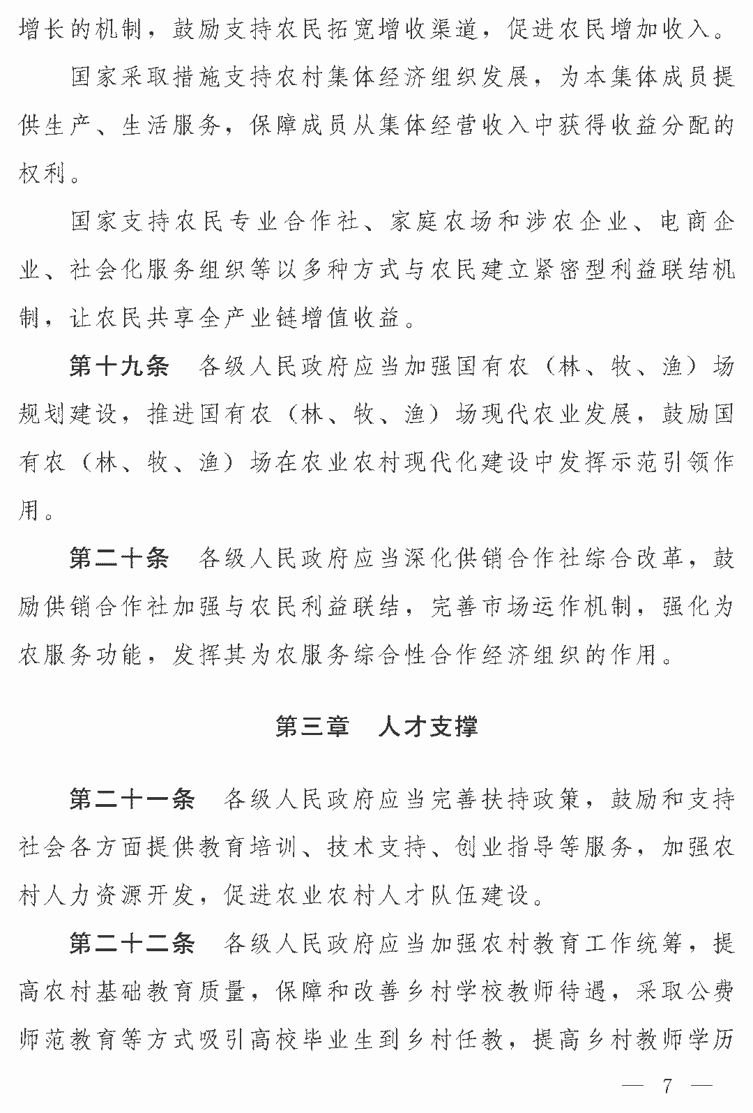 《中華人民共和國鄉(xiāng)村振興促進法(草案二次審議稿)》包含總則、產業(yè)發(fā)展、人才支撐、文化傳承、生態(tài)保護、組織建設、城鄉(xiāng)融合、扶持措施、監(jiān)督檢查、附則等共10章71項條款。
